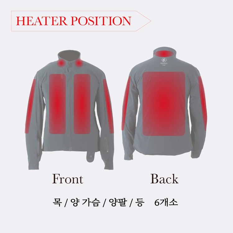 자켓 전체에 배치 된 히트 패널 면적이 가장 큰 최상급 모델 입니다.